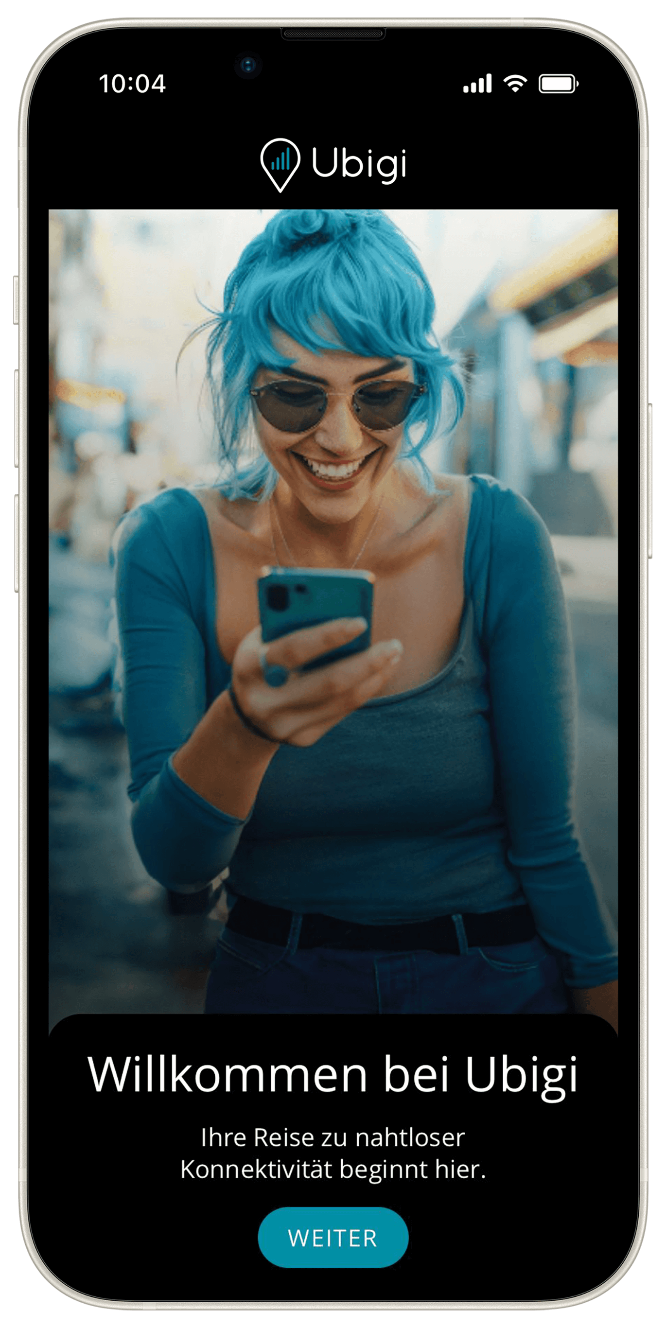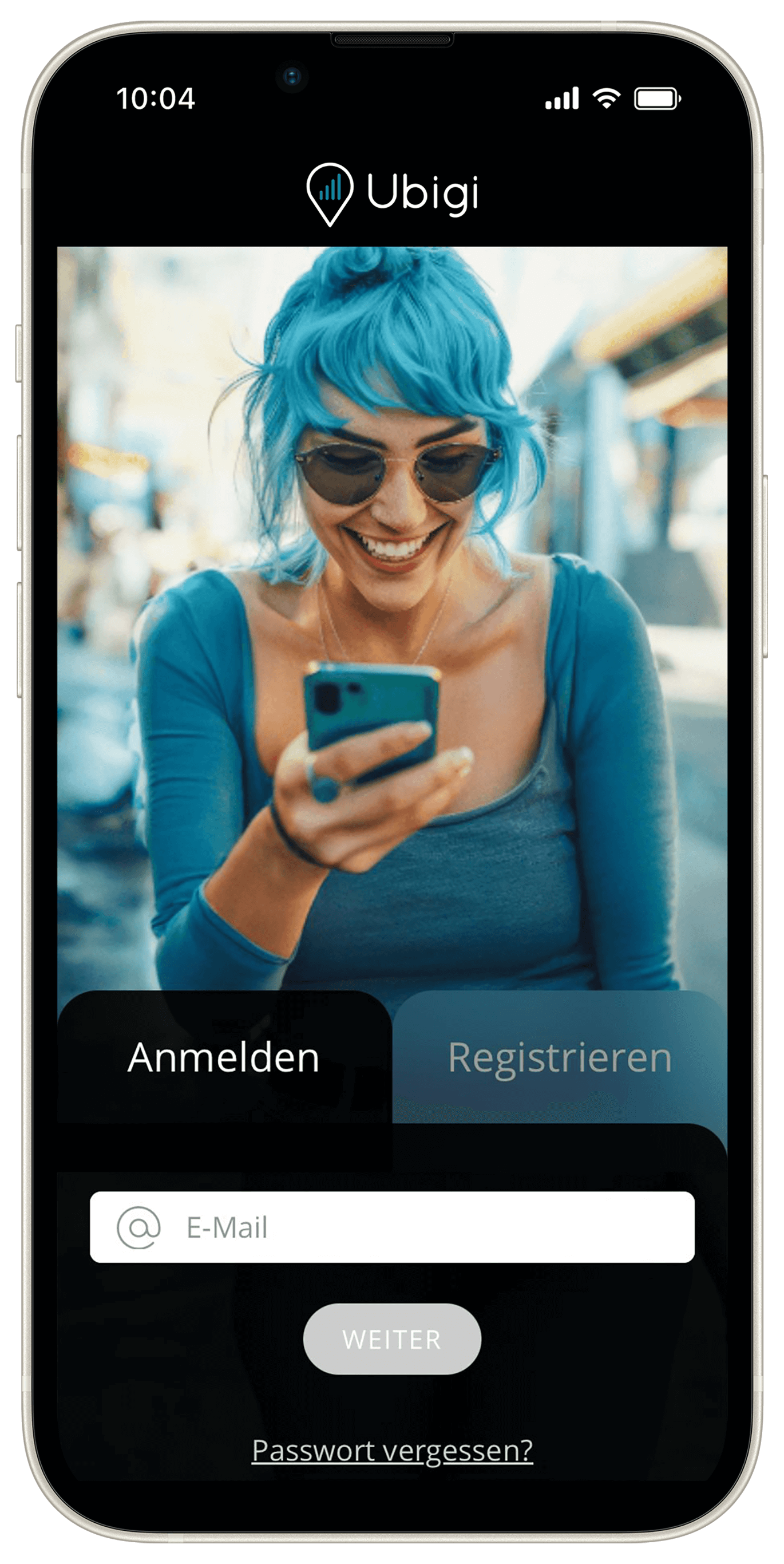 1- Starten Sie die Ubigi-App auf Ihrem Mobilgerät.